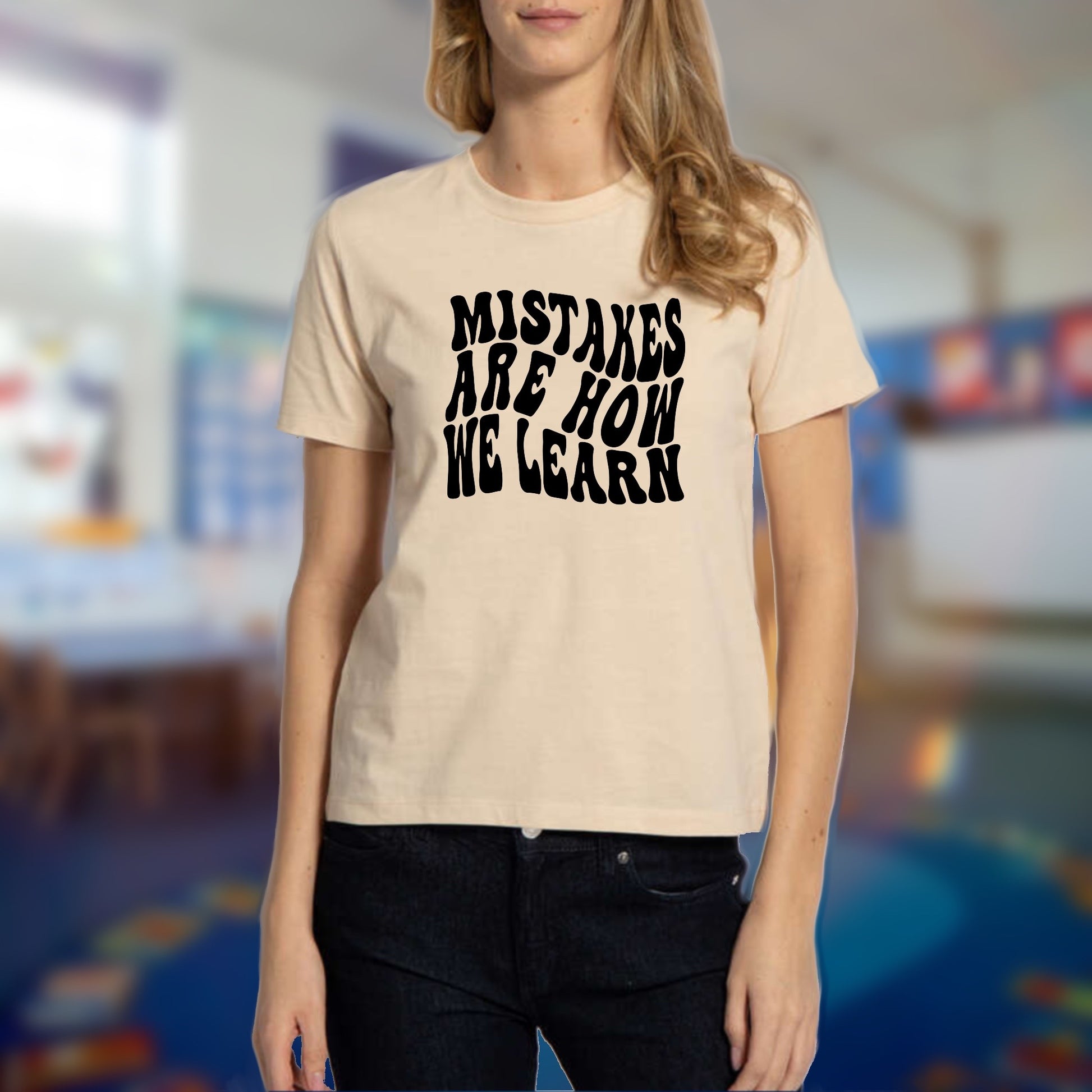 The bold text on the front of the shirt reads "Mistakes Are How We Learn," serving as a reminder that even when we make mistakes, we are still growing and developing. It's the perfect message for anyone who struggles with perfectionism, reminding us that mistakes are not something to be feared, but rather celebrated.